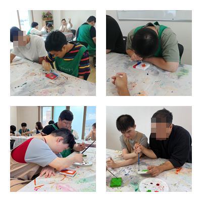 놀이미술로 캔버스에 꽃 그림을 그렸습니다.