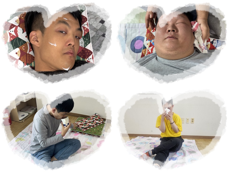 스킨테라피로 로션을 바르고 차를 마시며 휴식을 취하였습니다.