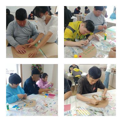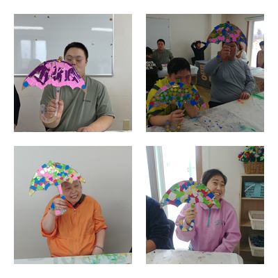 놀이미술로 종이박스로 만든 우산 꾸미기하였습니다.