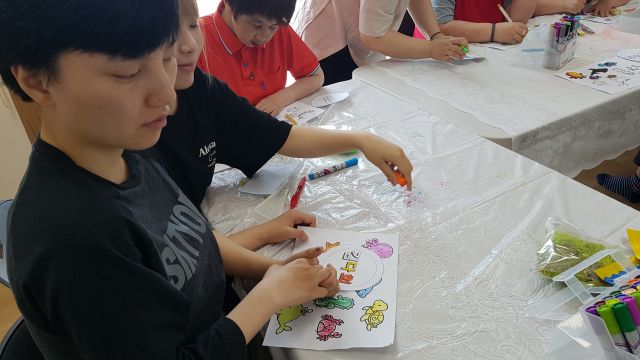 조개, 소라, 물풀 등을 이용해서 나만의 수족관 만들기 활동을 했습니다.