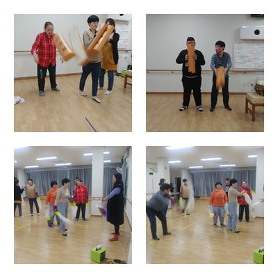 전통놀이로 대문놀이 노래 부르고 한삼춤, 윷놀이하였습니다.