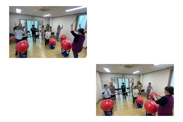 음악에 맞춰 퍼포먼스와 짐볼난타를 하였습니다.