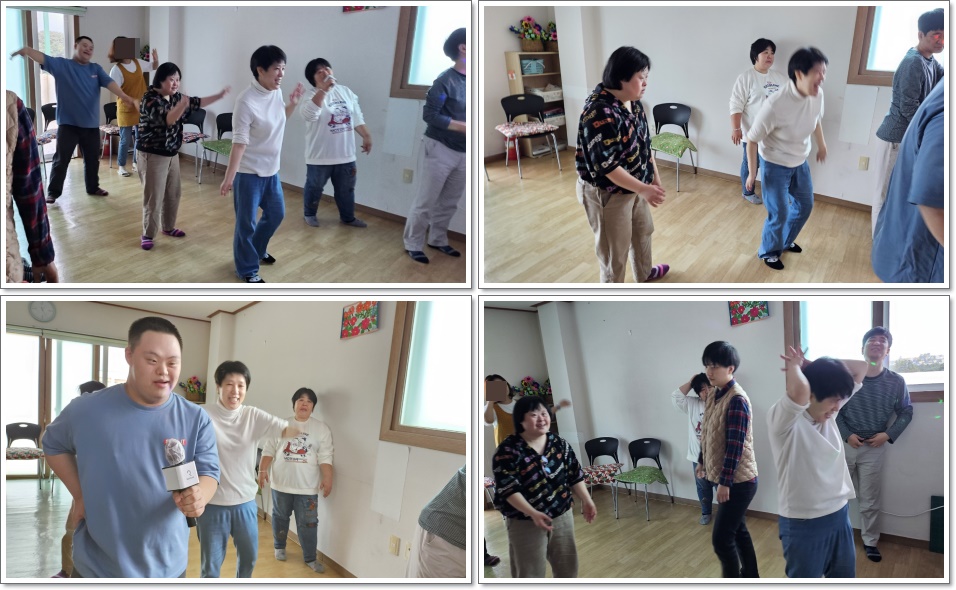 음악활동으로 노래를 부르며 춤을 추었습니다.