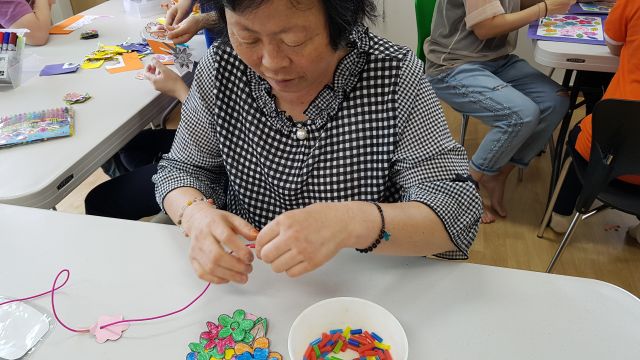 종이에 색칠하고 자른 빨래를 연결하여 목걸이를 만들었습니다.