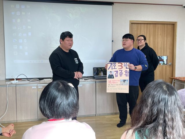 이용인자치회 회장 선거운동을 하엿습니다.