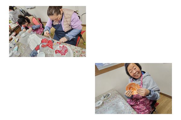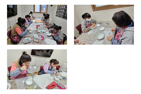 한지를 이용하여 꽃 접시를 만들었습니다.