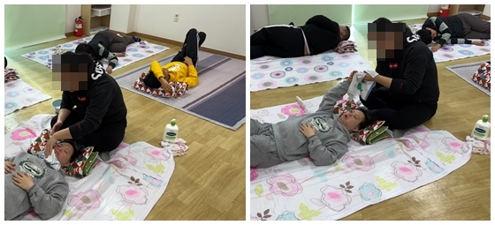 스킨테라피로 로션을 바르고 손마사지를 하였습니다.