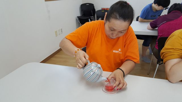 * 매주 화요일 여가활동 시간에는 색이 예쁘게 빨간 비트차를 마시며 이야기 나눌 수 있는 여유로운 시간을 즐겼습니다.