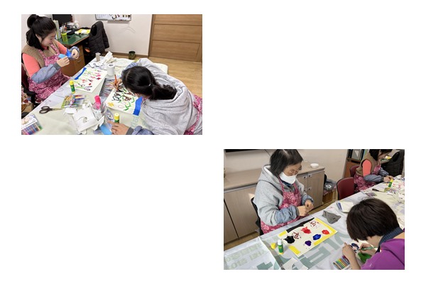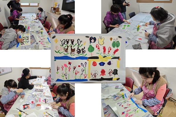 데칼코마니 기법(물감과 실 등)을 활용한 그림 활동을 하였습니다.