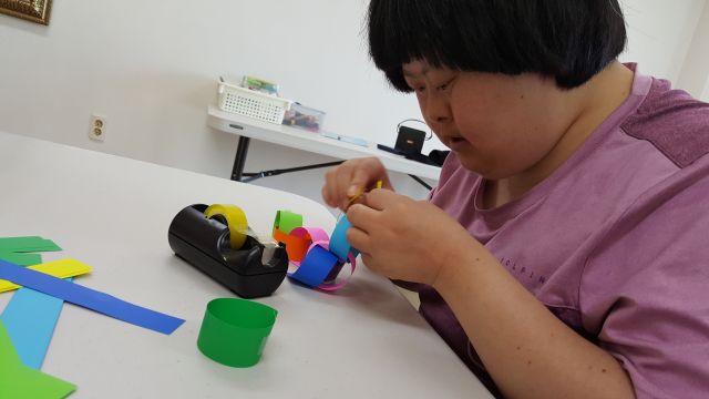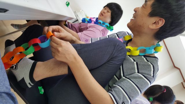 색종이 목걸이.. 진지하게 만들고 있지요? ^^