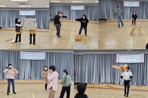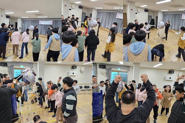 설을 맞이하여 비석치기, 미션 윷놀이, 박 터뜨리기 등 전통놀이를 하였습니다.