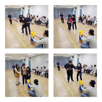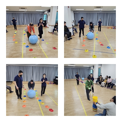 심리운동으로 점프, 짐볼굴리기, 줄다리를 하였습니다.