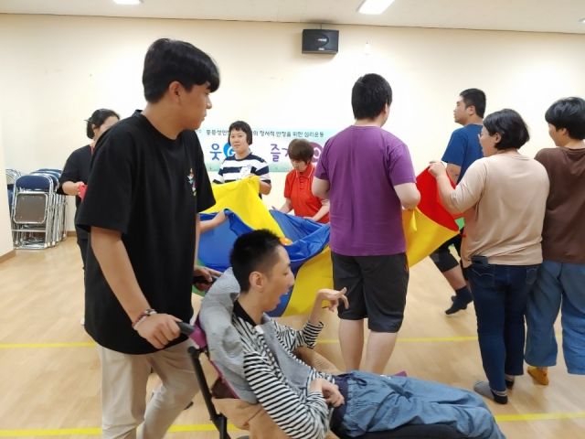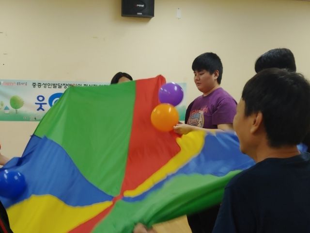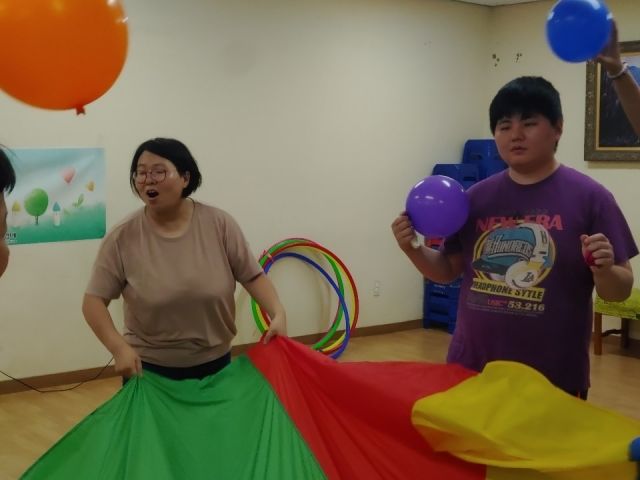 심리운동 시간에 파라슈트와 풍선을 이용해 다양한 게임을 하는 시간을 가졌습니다.