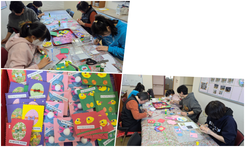 색지, 뽕뽕이, 모루 등 다양한 재료를 이용하여 부활 카드를 만들었습니다.