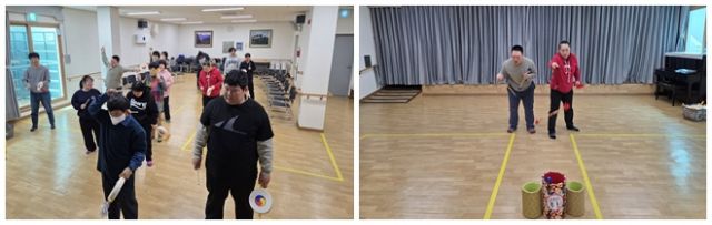 전통놀이로 소고치기와 투호 던지기 하였습니다.