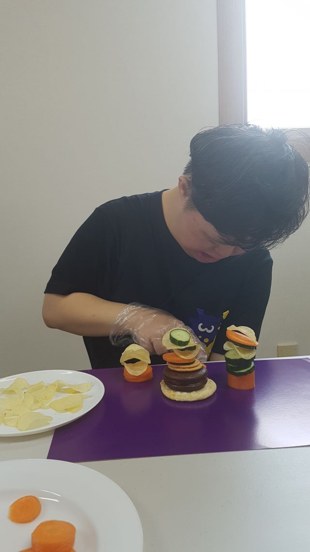 활동에 필요한 색도화지, 푸드매체 선택도 내가~ 탑 쌓기도 내 생각대로~
