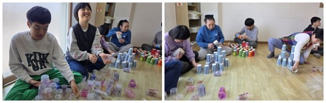 조작활동으로 컵쌓기 하였습니다.