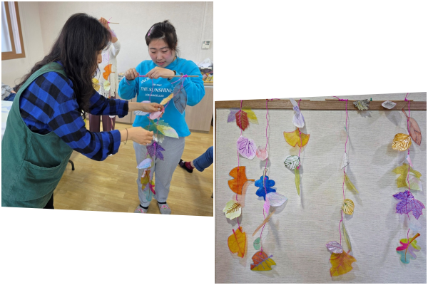 나뭇잎을 관찰하여 탁본을 뜨기와 폐플라스틱판과 유성매직 등을 활용하여 가렌더 만들기를 하였습니다.
