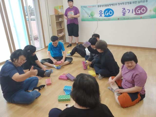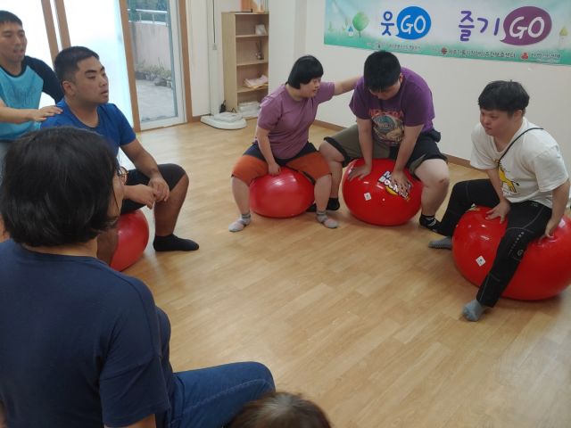 심리운동2 시간에 짐볼을 활용한 다양한 활동을 하였으며 블럭을 가지고 게임도 하였습니다.