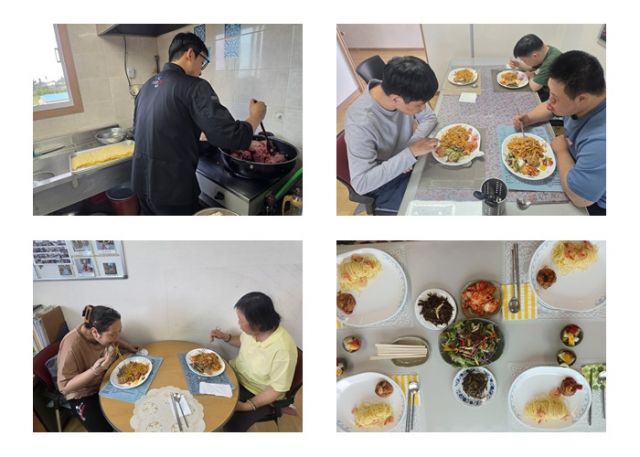센터 사회복무요원 요리 재능 기부로 로제 스파케피, 미니두부스테이크, 샐러드 등 점심을 맛있게 먹었습니다.