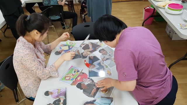 30회기 동안 활동한 영상을 시청하고 자신의 얼굴을 꾸며 전시회를 열어보았습니다.