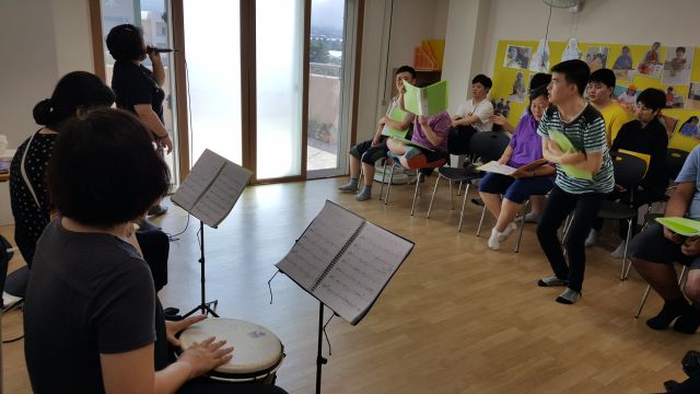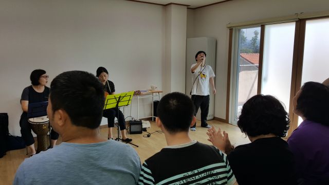 *음악전문 봉사자 "끌림소리"와 함께 노래를 부르며 신나고 즐거운 시간 가져봤어요.
