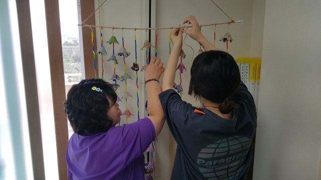계란판을 이용하여 모빌 만들기를 했습니다.