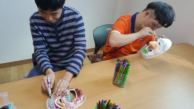 25일 오늘은 한국 전통 탈을 예쁘게 채색했어요.