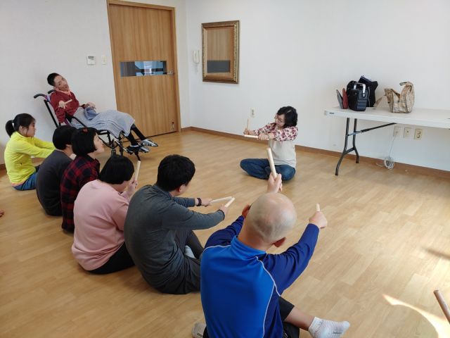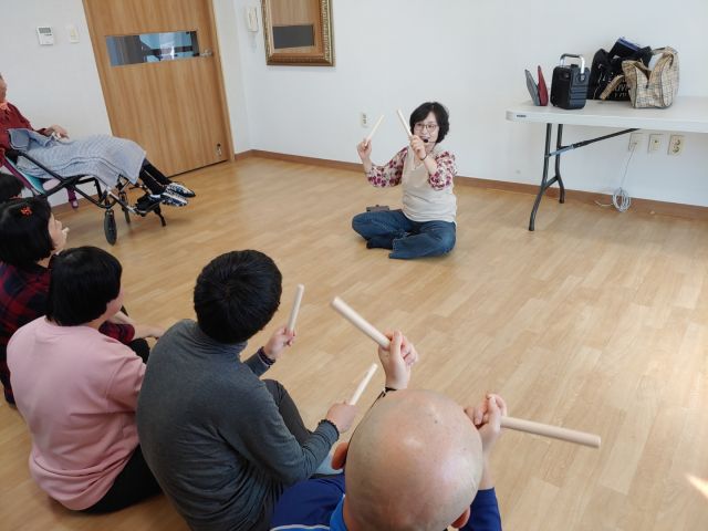 힐링해피댄스 시간에 리듬막대를 이용하여 난타 두드림과 라인댄스를 추는 시간을 가졌습니다.