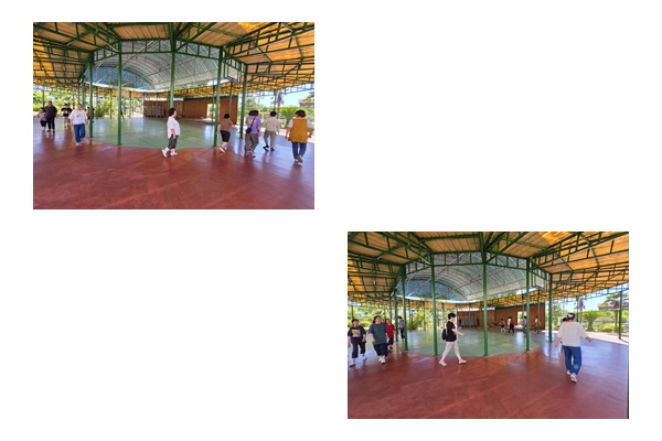 교사와 이용인들과 함께 걷기운동을 하였습니다.