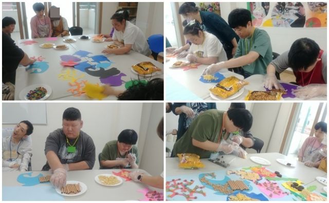 우리가 함께 바다를 자유롭게 다양한 재료로 표현하였습니다.