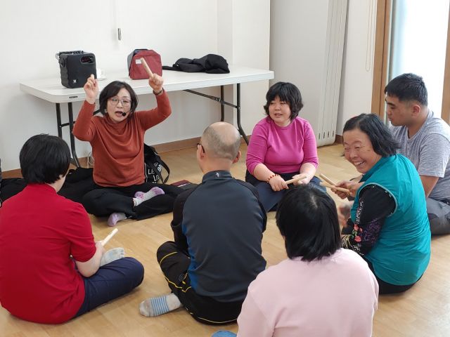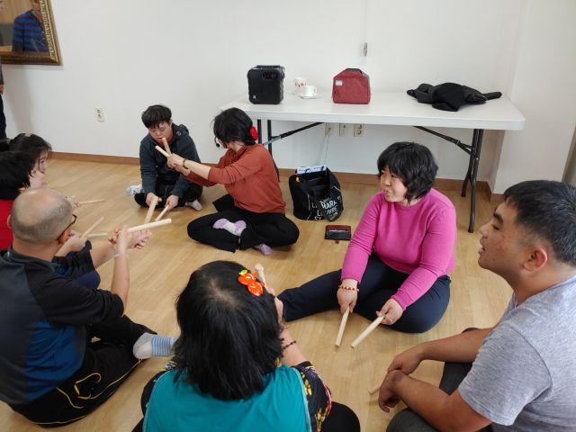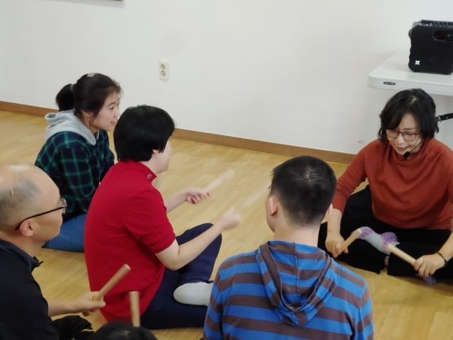 강사님과 리듬막대를 이용해 리듬 익혀보기와 신나게 두드림을 해보는 시간을 가졌습니다.