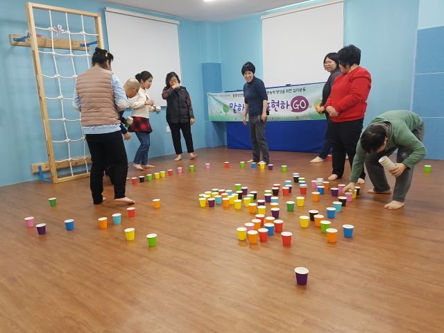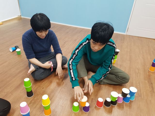 나란히 펼쳐놓기, 1단, 2단 쌓기 놀이, 사이로 걸어 다니기, 뛰기, 협동 작품 만들기 활동을 하고