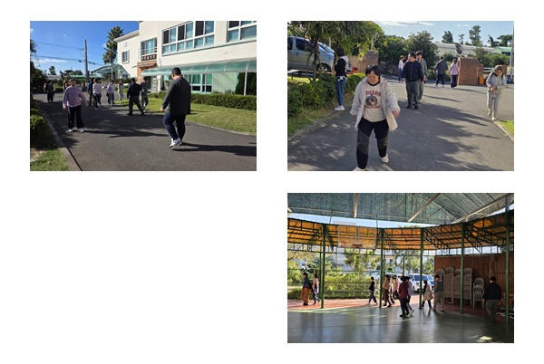 이용인과 교사 함께 건강관리를 위해 매일 걷기 운동을 하고 있습니다.