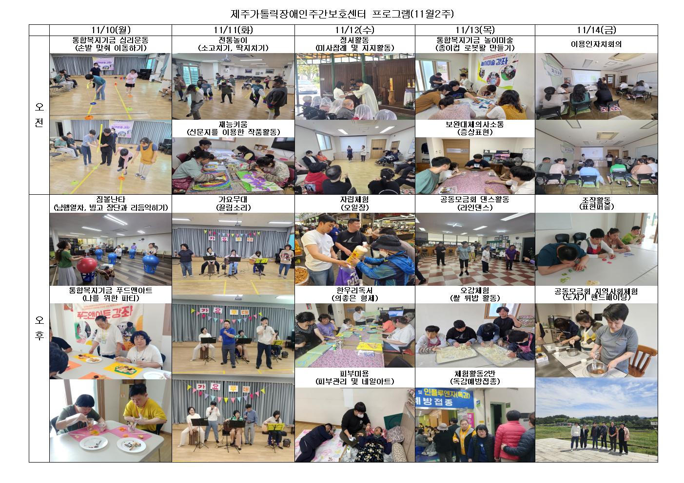 • 제목 제주가톨릭장애인주간보호센터 주간일정안내 11월 2주
