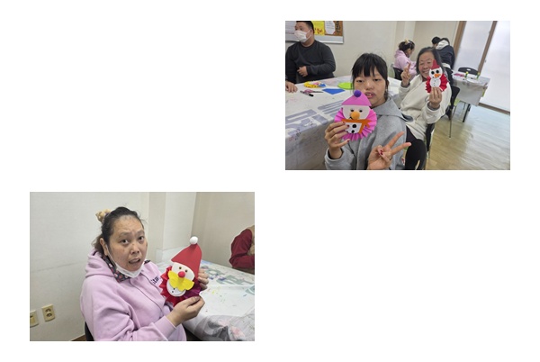 색종이, 눈알스티커 등을 이용하여 눈사람, 산타 할아버지를 꾸몄습니다.