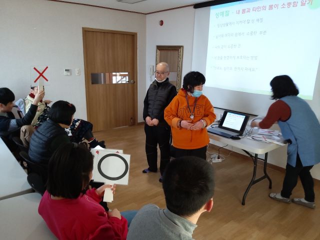 2월 7일 이용인 대상으로 성교육을 하였습니다.