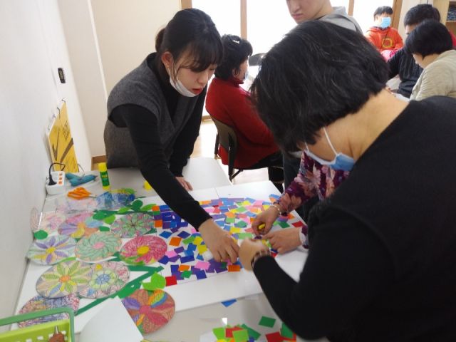 미술활동으로 만다라 대형 꽃병만들기와 알록달록 한복 족자 만들기를 하였습니다.