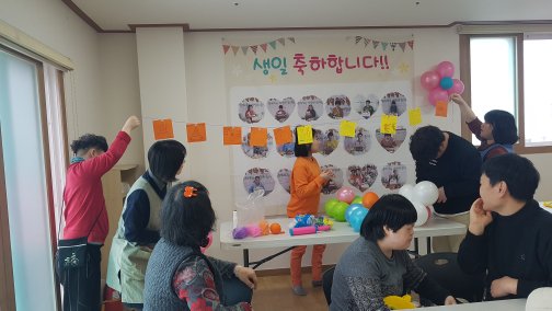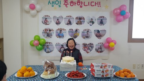 생일 축하노래와 음식을 함께 나눠 먹으면서 기쁨을 같이 나누며 즐거운 시간을 가졌습니다.