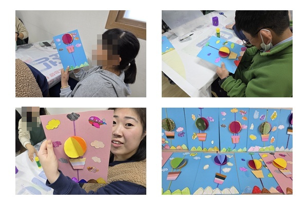 색종이와 털실 등을 이용하여 움직이는 열기구 꾸미기 활동을 하였습니다.