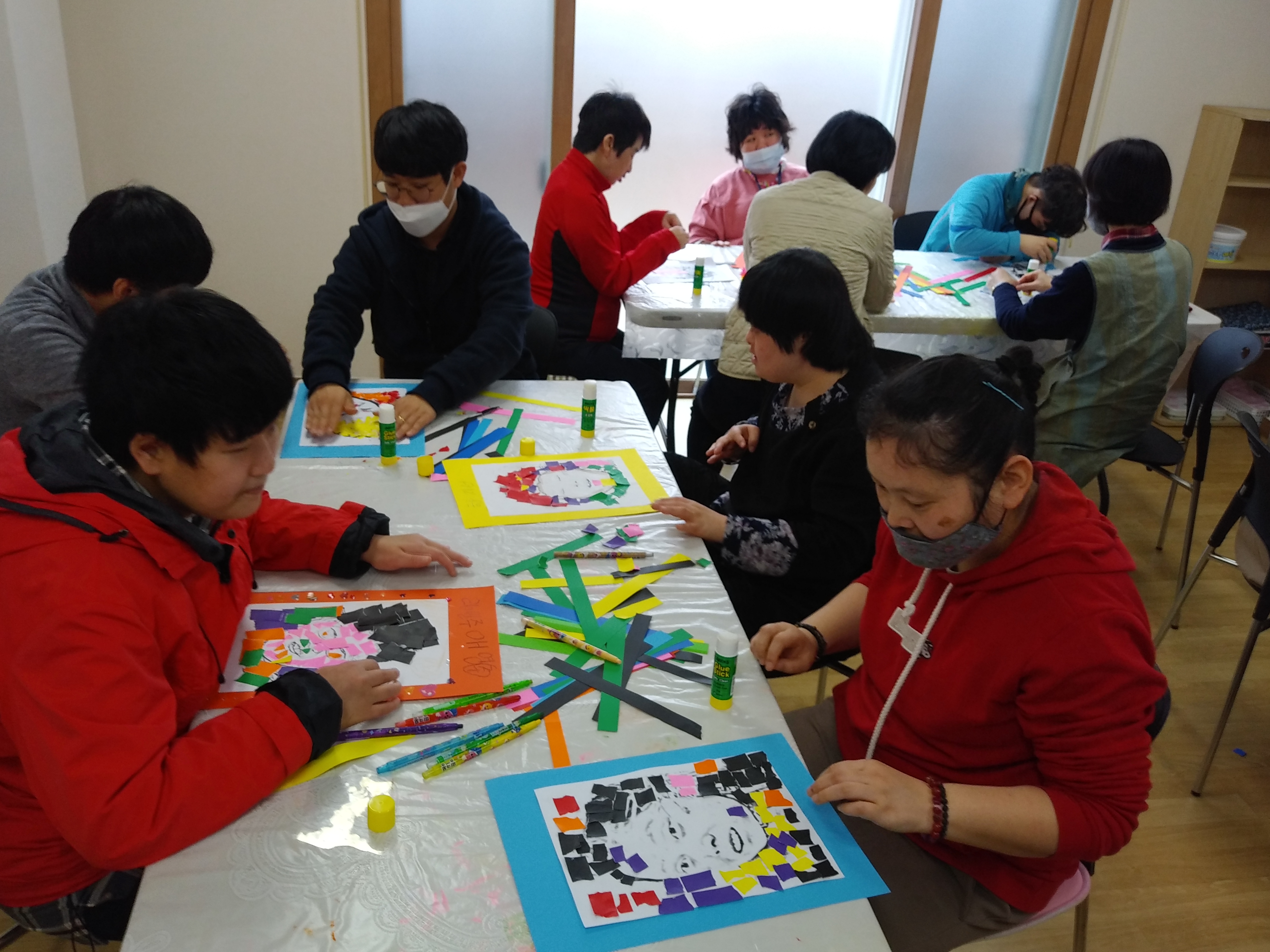 3월26일 미술활동으로 자화상 콜라쥬를 했습니다.