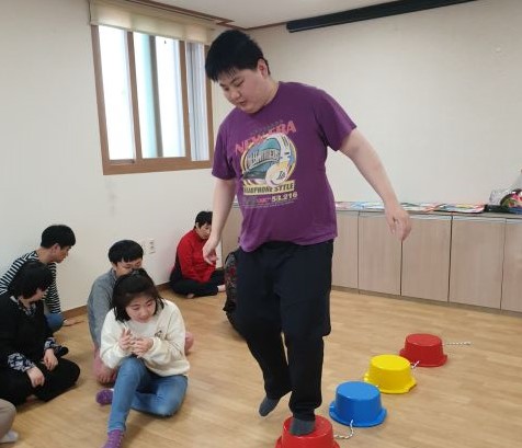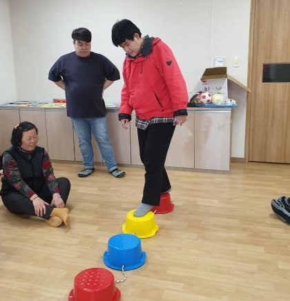 징검다리를 이용하여 균형감각을 익혀보는 시간을 가졌습니다.