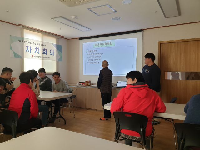 이용인자치회의를 진행하여 5월 체험활동 장소 및 환경사랑실천을 선정하는 시간을 가졌습니다.