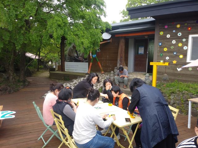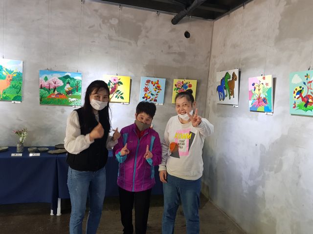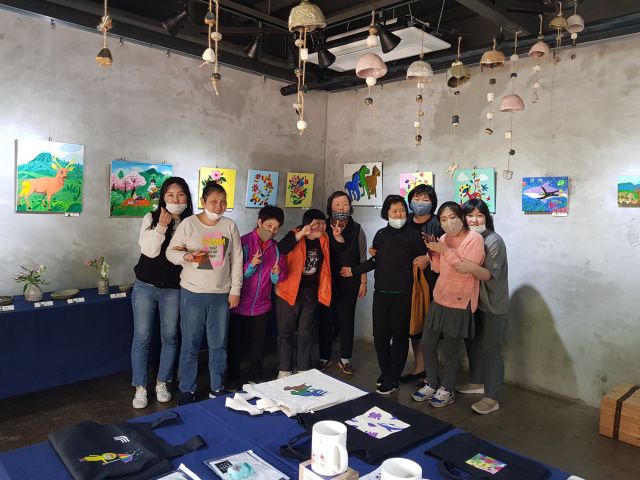 - 성인발달장애인들의 제주를 대표하는 동백, 바다, 해녀 및 자연풍경을 그림을 감상 하였고, 접시, 그릇, 컵, 컵 받침대 등 도자기, 가방, 손거울, 양말 소모품을 구경하고 구입하면서 즐거운 시간을 보냈습니다.