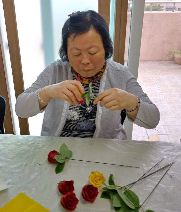 꽃과 줄기를 연결하고 포장지를 이용하여 리본으로 마무리까지 스스로 할 수 있도록 하였습니다.