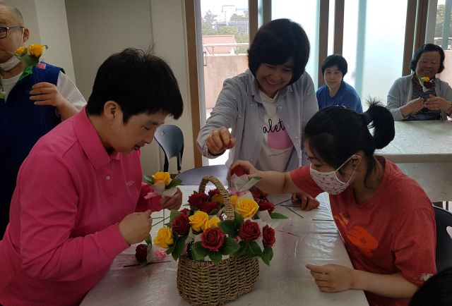 원예 프로그램 시간에 비누꽃을 이용하여 꽃바구니 만들기를 하였습니다.