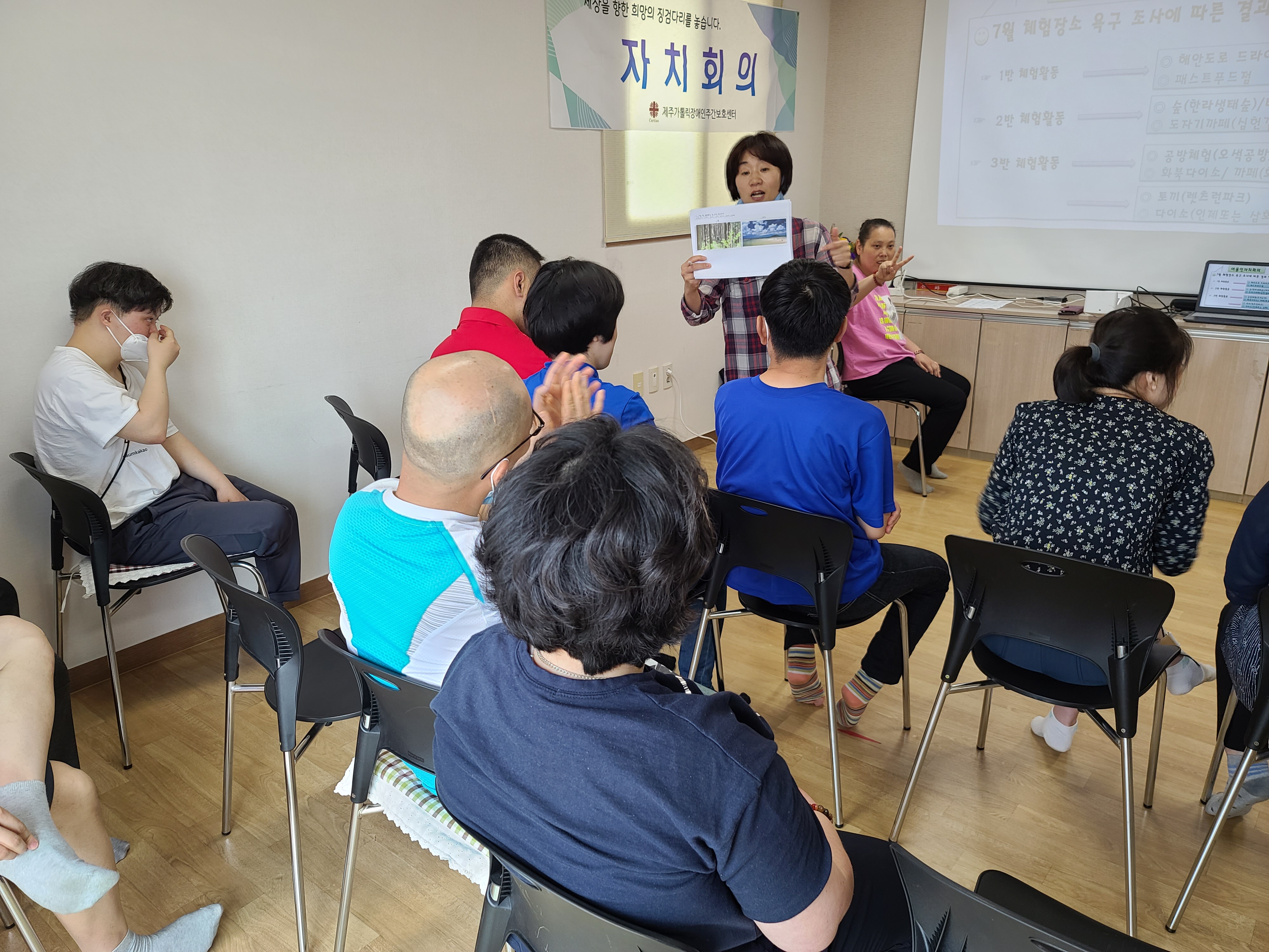- 체험장소 선정, 환경사랑실천운동 등 이용인들의 주체가 되어 회의를 진행하였습니다.