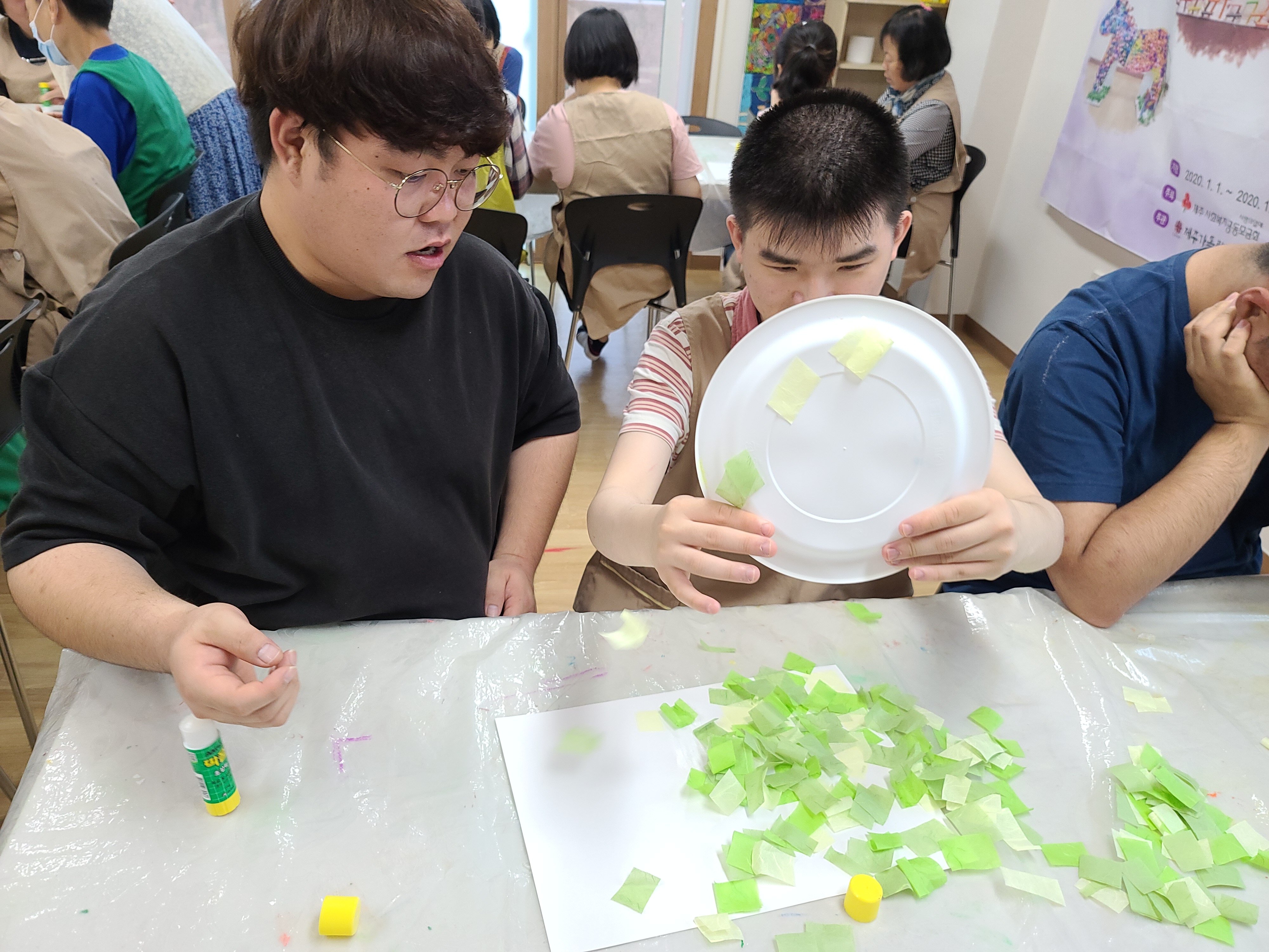 6월 18일 오전 미술활동으로 모네의 수련 만들기 활동을 하였습니다.