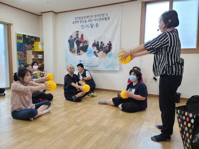 6/18 인지활동으로 스마일볼을 이용한 다양한 활동을 하였습니다.
