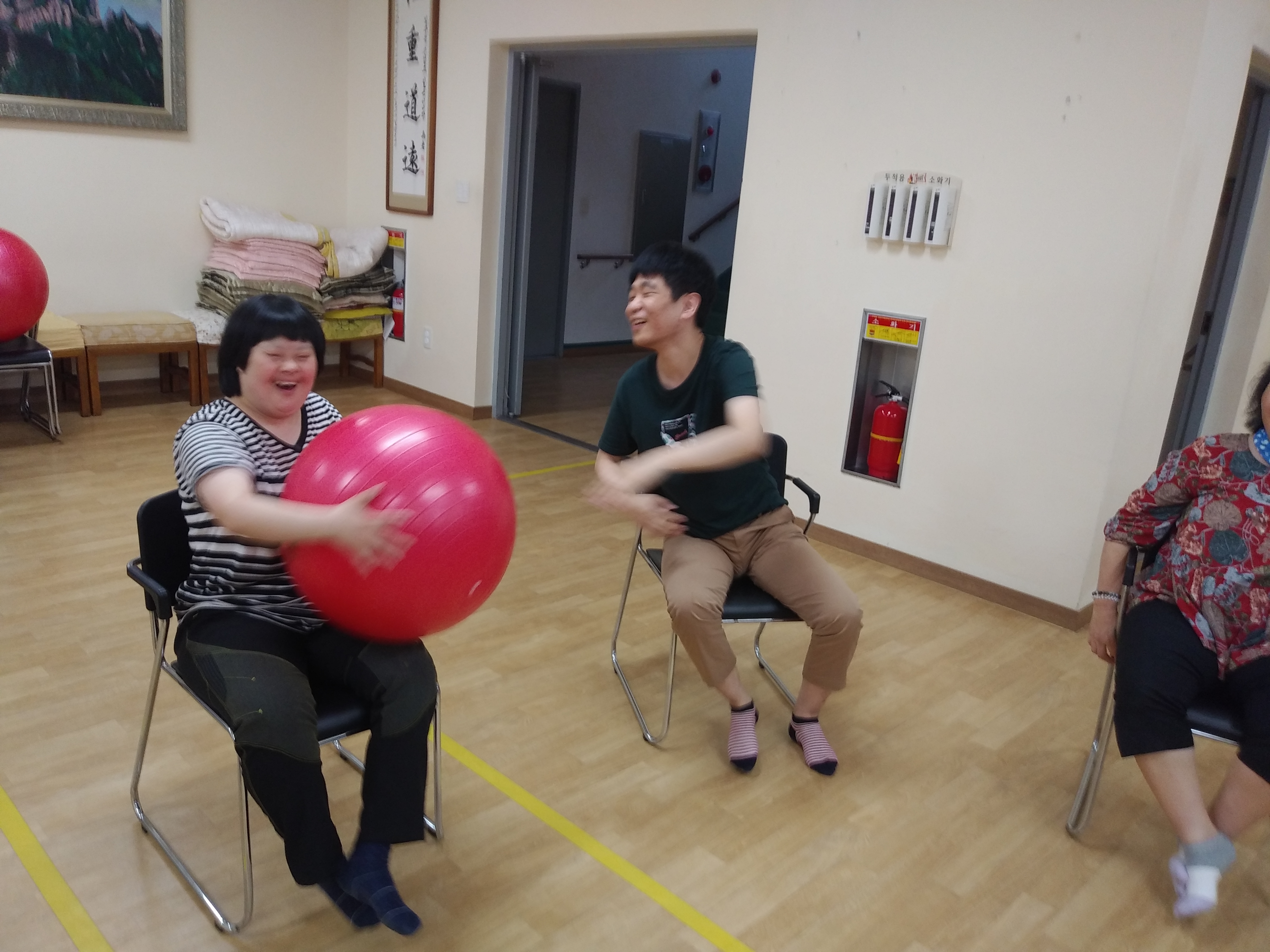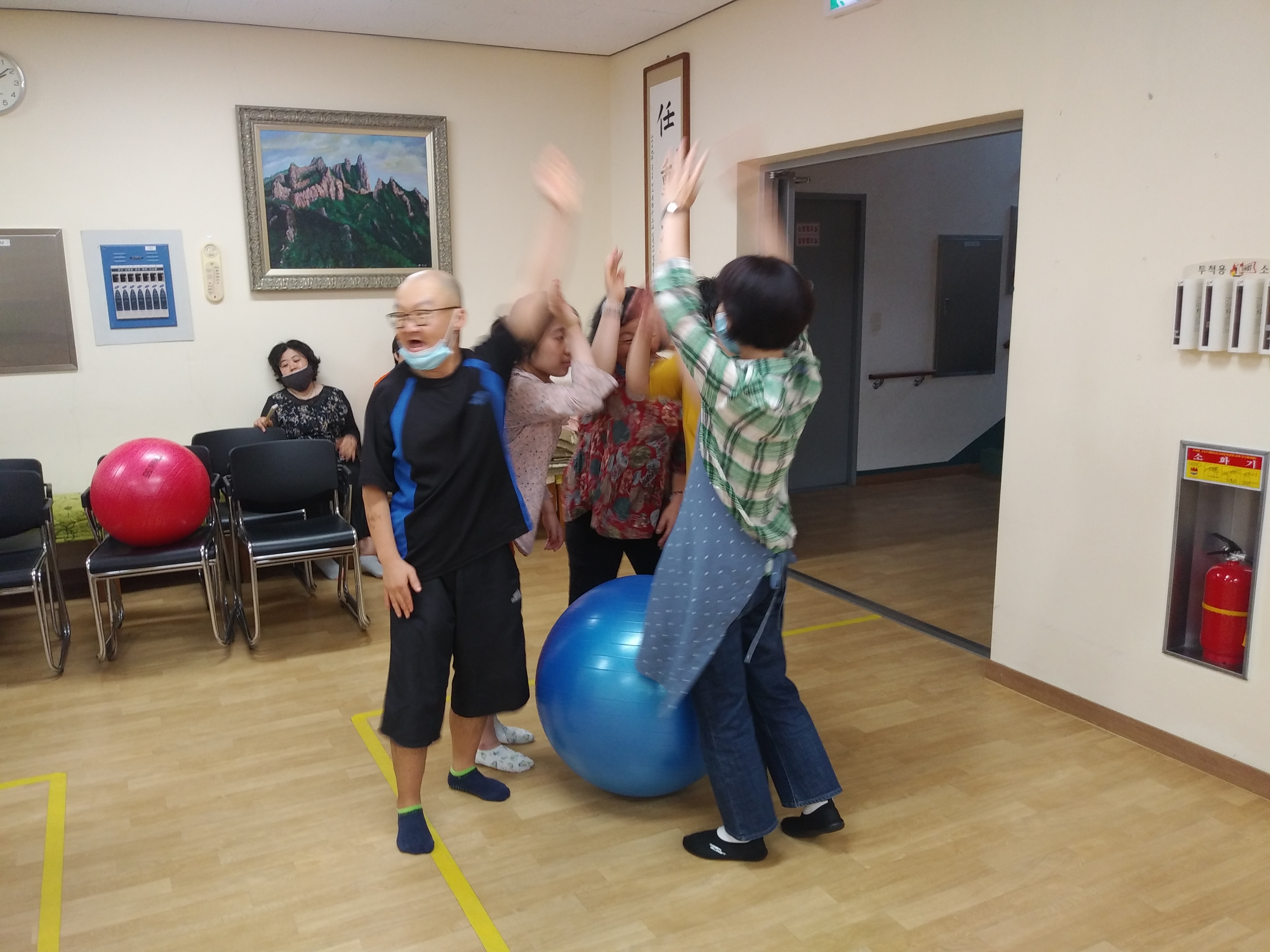 7월 7일 오후, 심리운동1 짐볼을 이용한 다양한 신체놀이 활동을 하였습니다.
